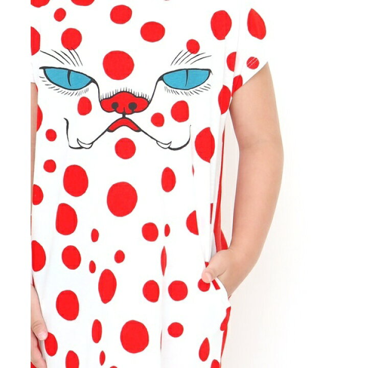 Graniph デザイン ティーシャツ ストア グラニフ の コラボレーションワンピース 化け猫 三毛 石黒亜矢子 ボトル ネック ショート スリーブ ワンピース ワンピース Wear